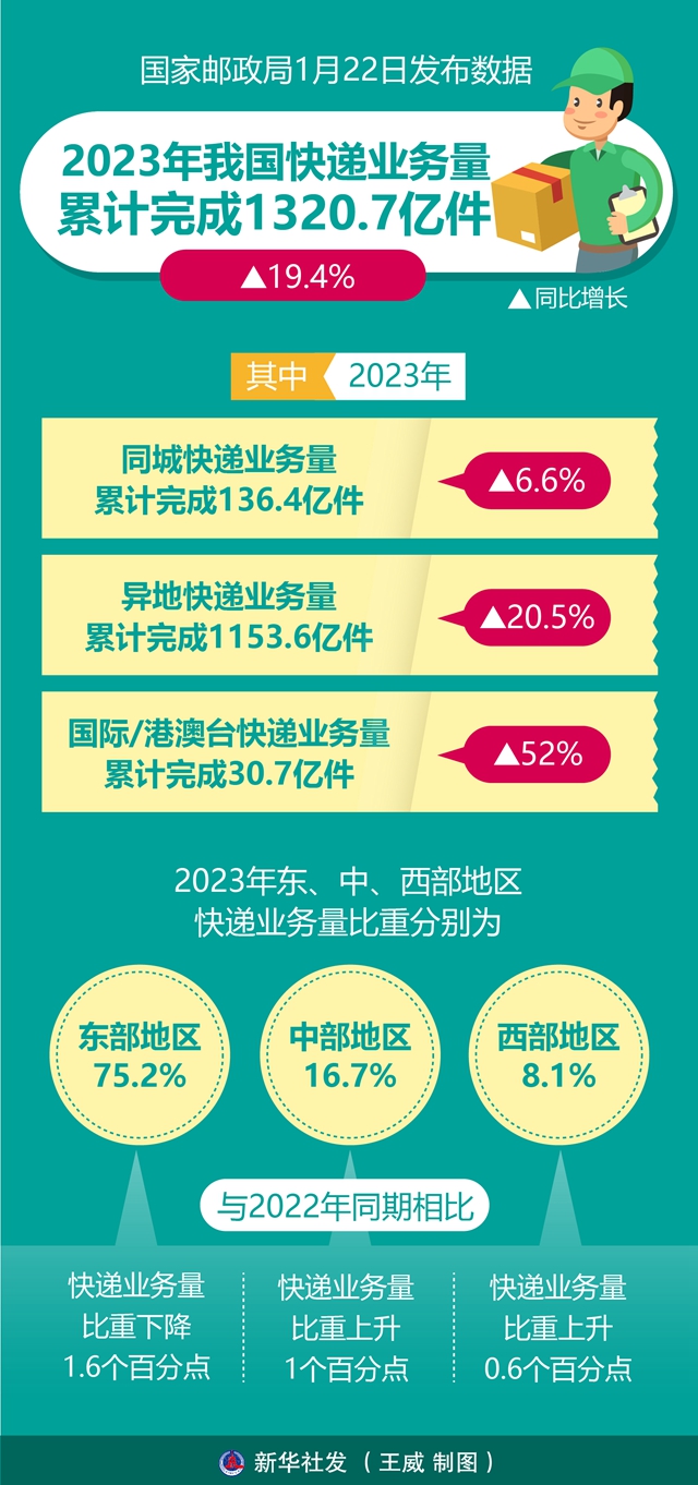 圖表:2023年我國快遞業(yè)務(wù)量累計完成1320.7億件